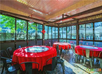 门前小桥流水、景色怡人的山外美景让您吃饭的同时感受潺潺的流水的爽,享受大自然的清新,碧水蓝天、群山相拥。
